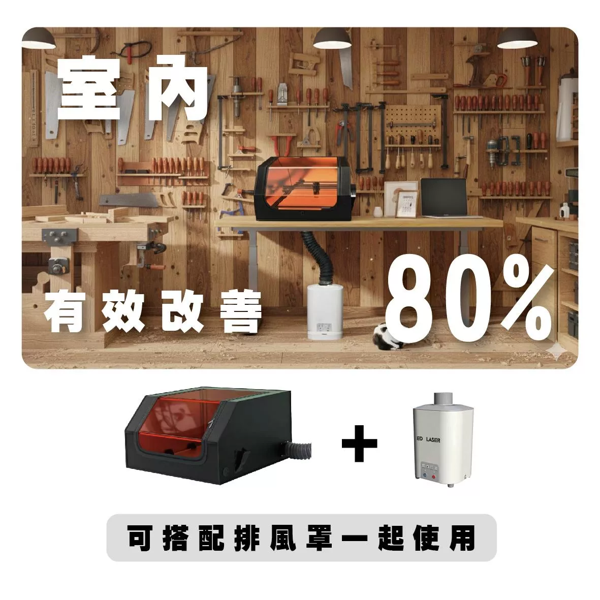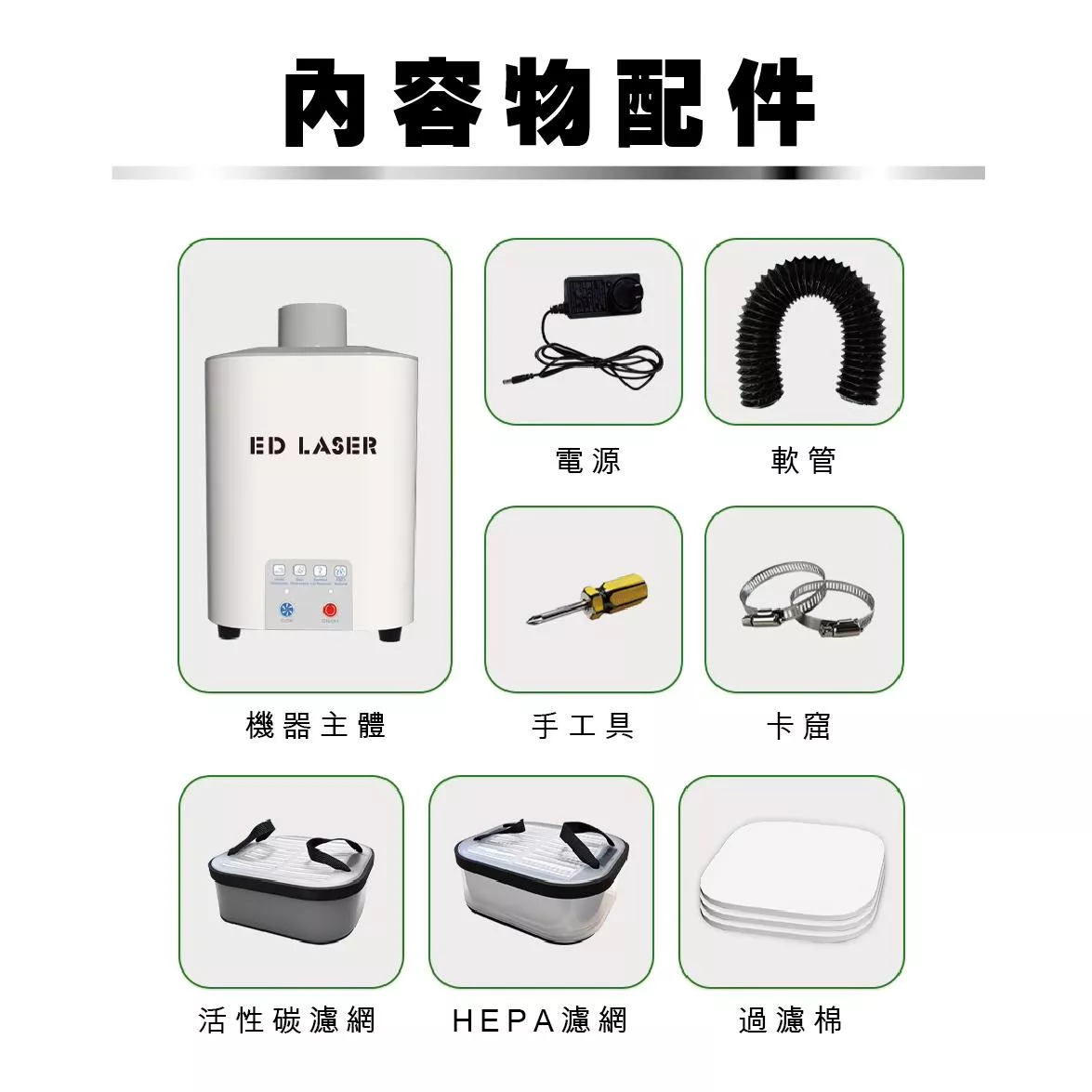 1. 雷射雕刻機專用小型空氣過濾器,有效過濾雷射雕刻、切割時產生的煙霧與異味