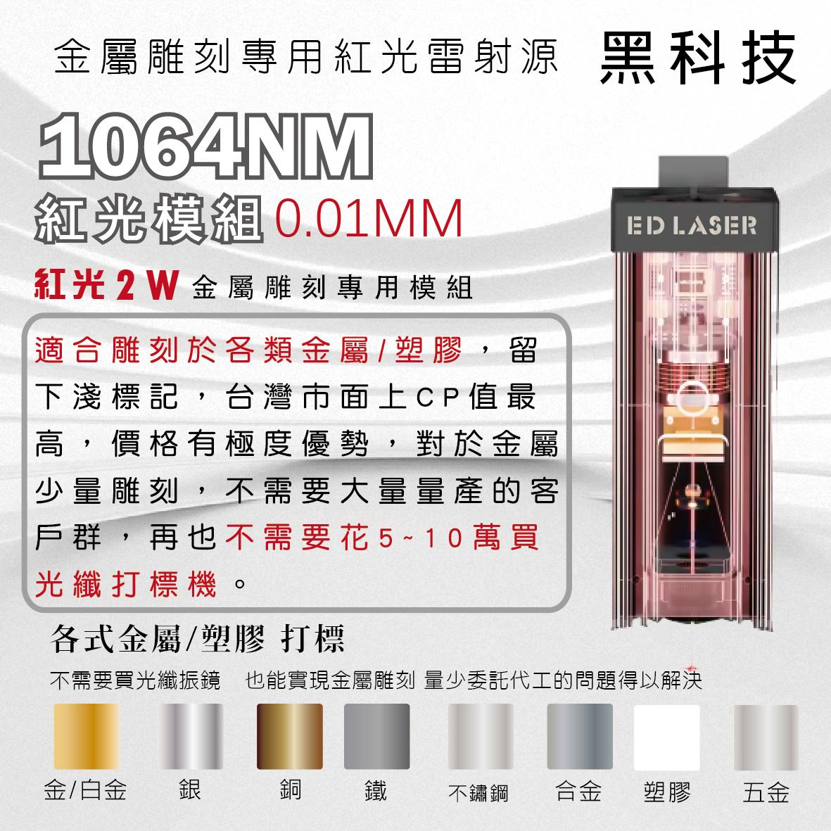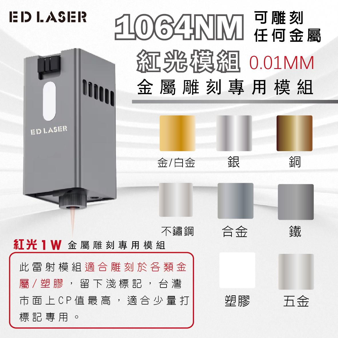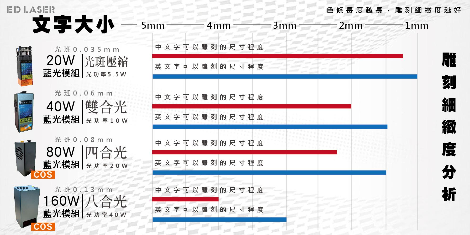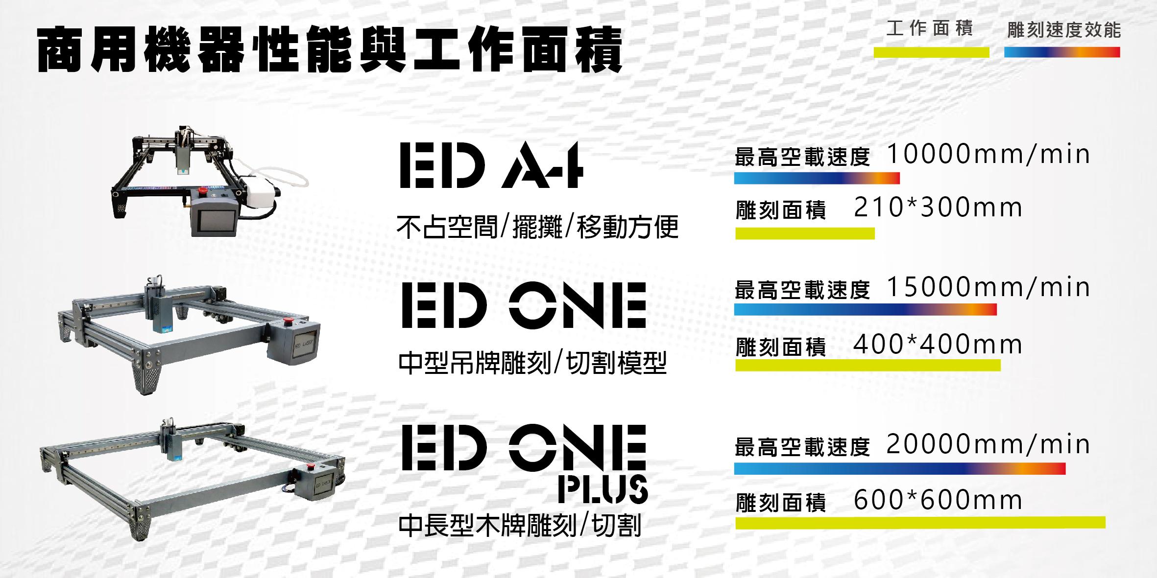 目前非工業機型,台灣只有EDLASER的大功率藍光,使用高成本德國COS封裝技術雷射模組,不易產生高溫,不易衰退,廣為台灣量產的公司所使用。
